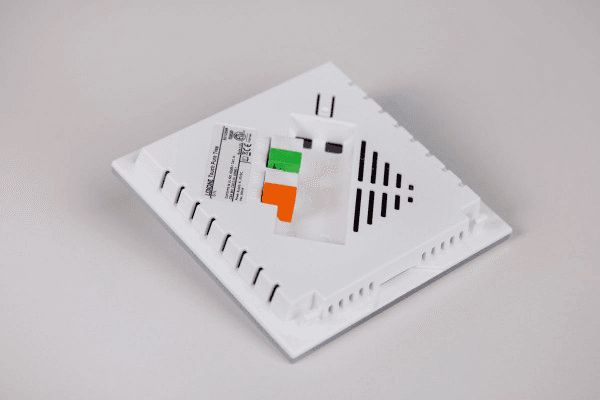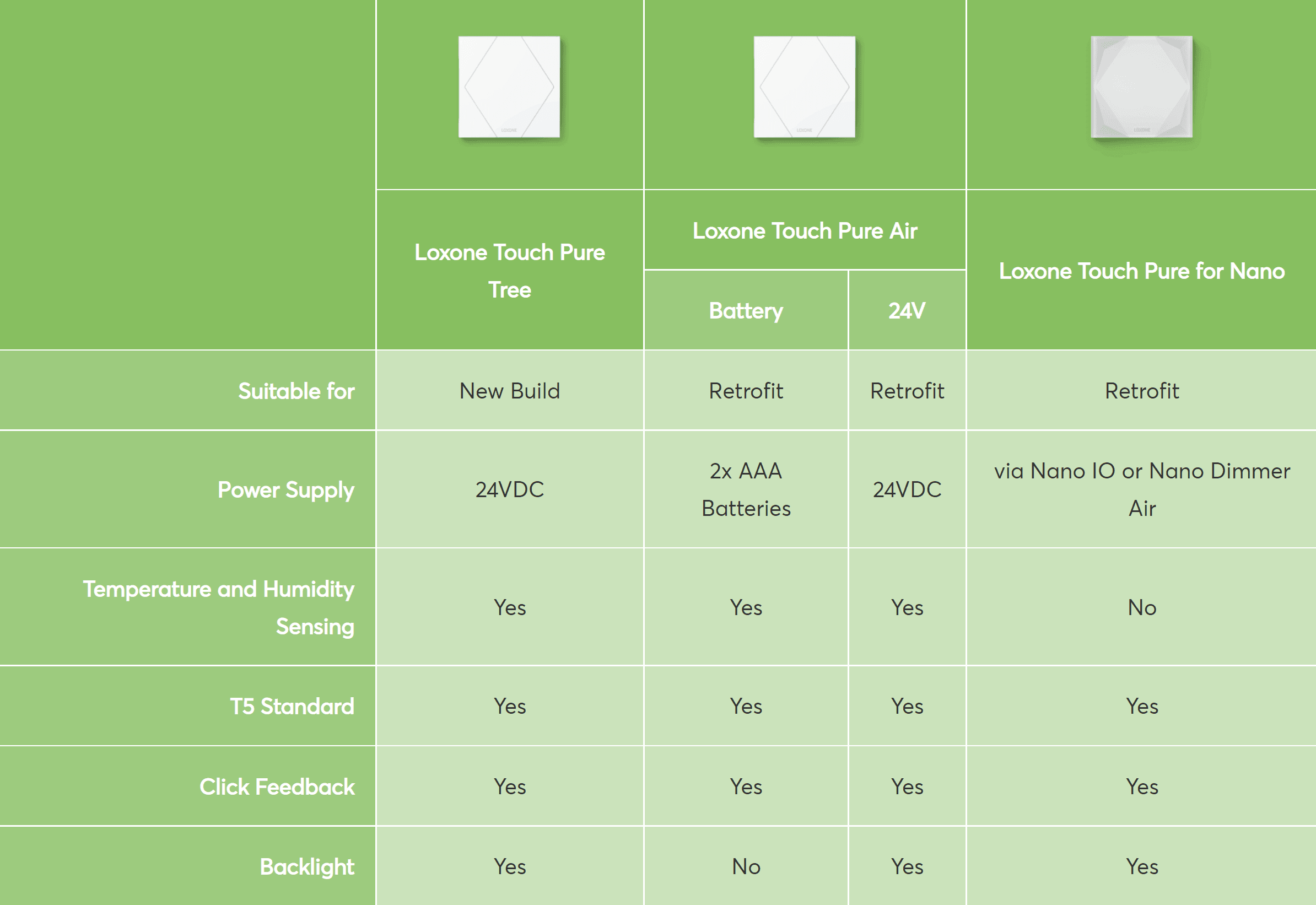 Touch Pure Air și Tree beneficiază în continuare de un senzor de temperatură și umiditate încorporat. Aceasta înseamnă că Loxone va putea gestiona intuitiv climatul camerei citind aceste niveluri prin Touch Pure în fiecare cameră – fără a fi nevoie de un termostat separat. În plus, senzorul de temperatură poate detecta și o creștere rapidă și considerabilă a temperaturii, alertându-vă cu privire la un potențial incendiu. Acest nivel de funcționalitate face cu siguranță Touch Pure un echipament polivalent impresionant.