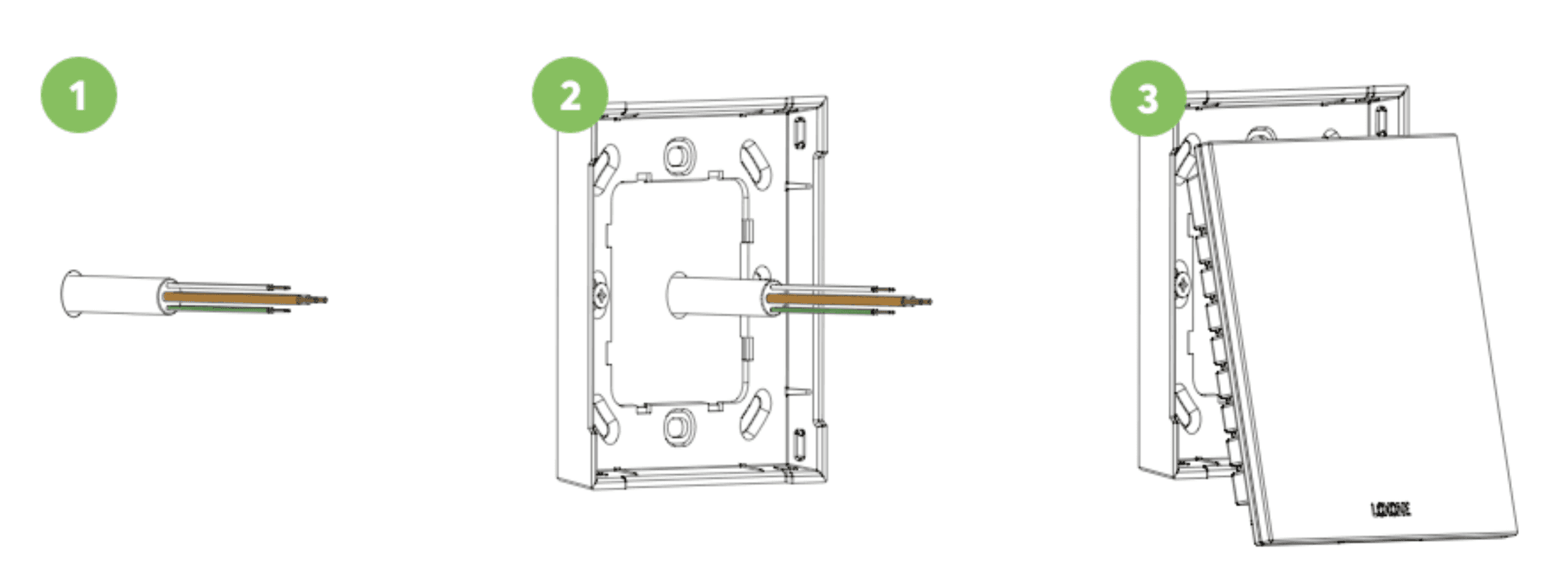 * Touch Pure pentru Nano este atașat la Nano IO Air sau la Nano Dimmer Air. Prin urmare, este încă necesară o cutie de spate clasică, încasabilă.