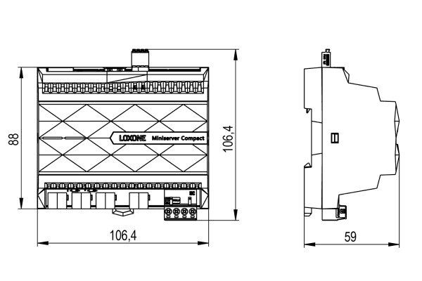 Miniserver Compact a fost dezvoltat special pentru tablouri de automatizare mai mici. De exemplu pentru a beneficia de cât mai mult spațiu posibil într-o cameră de hotel, putem folosii Loxone Miniserver Compact, deoarece are deja încorporată tehnologia Loxone Air, Tree și Tree Turbo! De asemenea, a fost integrat și software-ul Audioserver-ului, ceea ce îl transformă într-un echipament Multimedia - Multifuncțional.